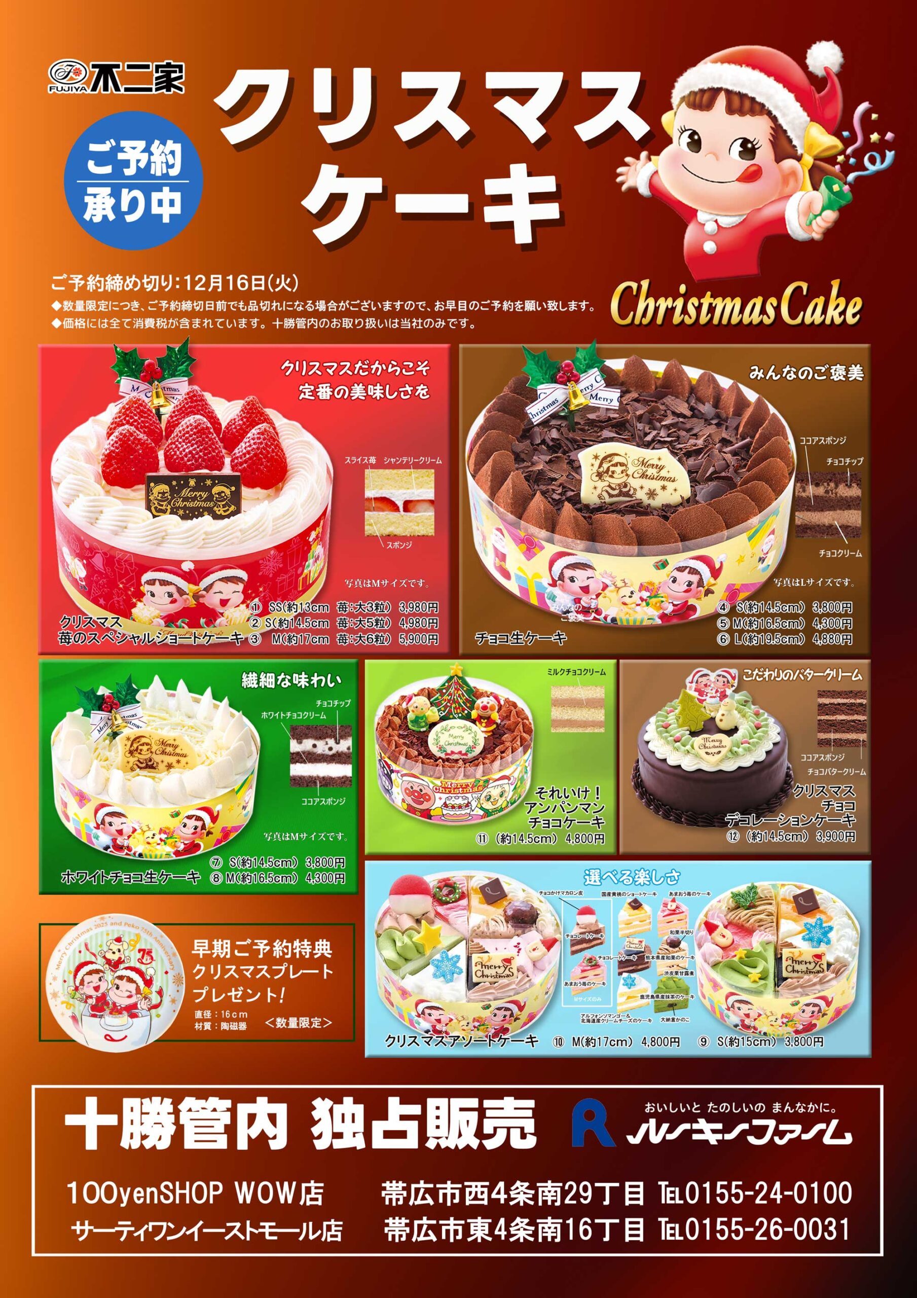 ペコちゃんの「不二家クリスマスケーキ」のご予約が始まりました。