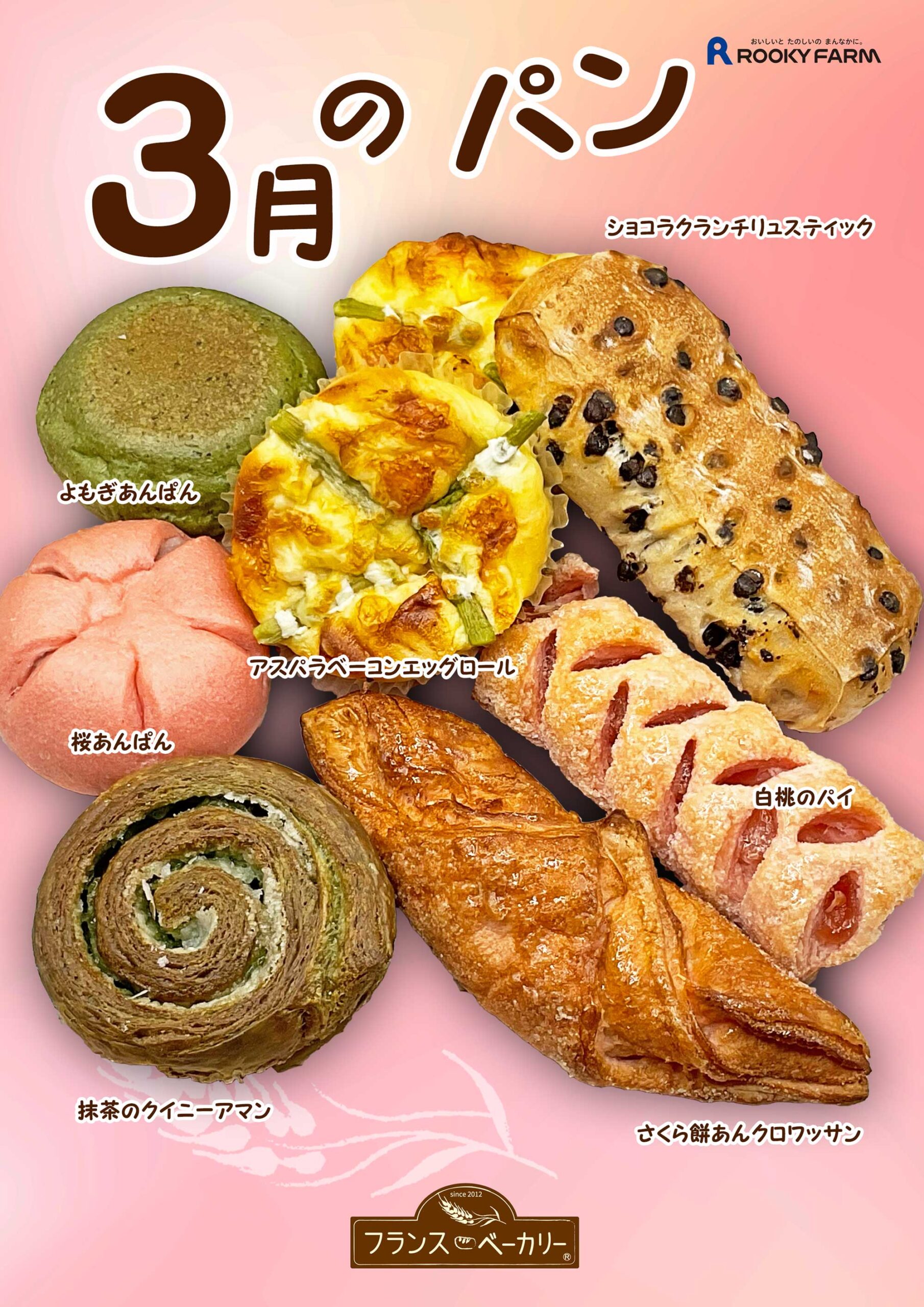 さて、3月に入り何となく春らしき雰囲気が?・・・このまま雪が降らないことを期待して?・・・3月のセレクトパンのご紹介をさせていただきます♪ 今回は春っぽいイメージのパンを7品目をご用意いたしました。