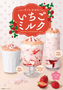 いちごミルクをベースに静岡県伊豆産の桜葉入りさくら餡を組み合わせた春限定のドリンクです。
